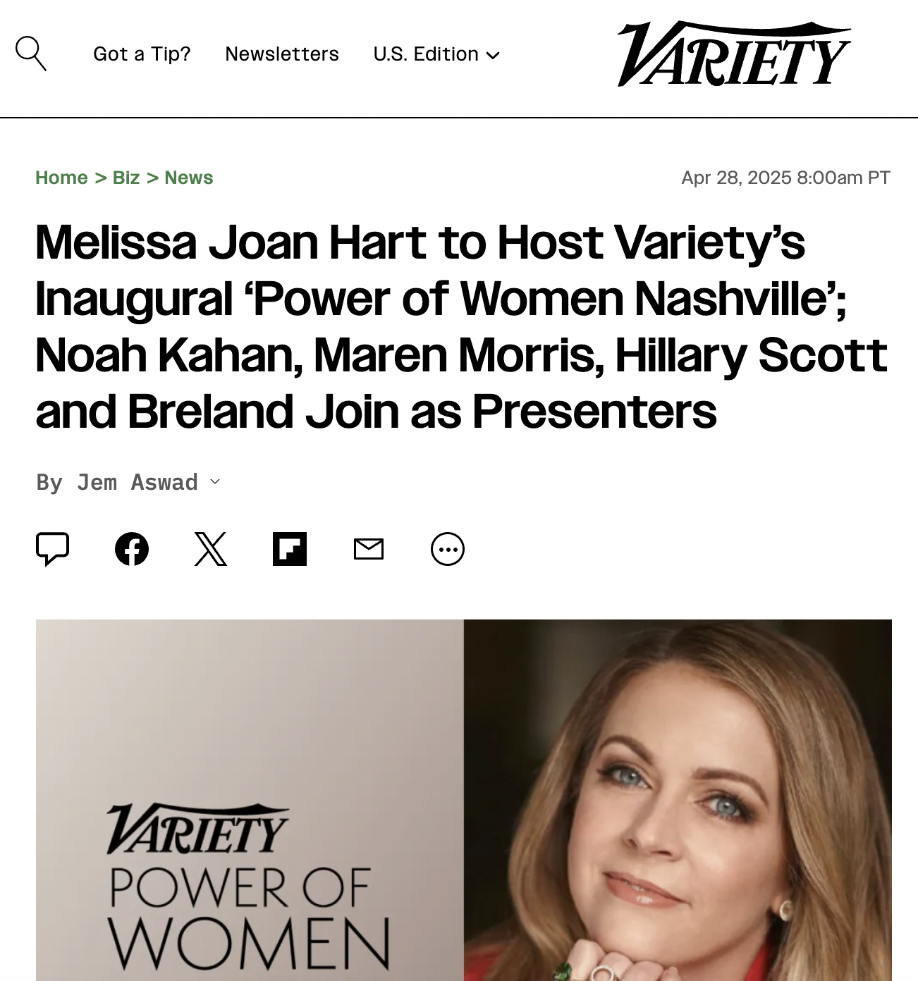 Melissa Joan Hart to Host Variety’s Inaugural ‘Power of Women Nashville’: AB is a Supporting Partner